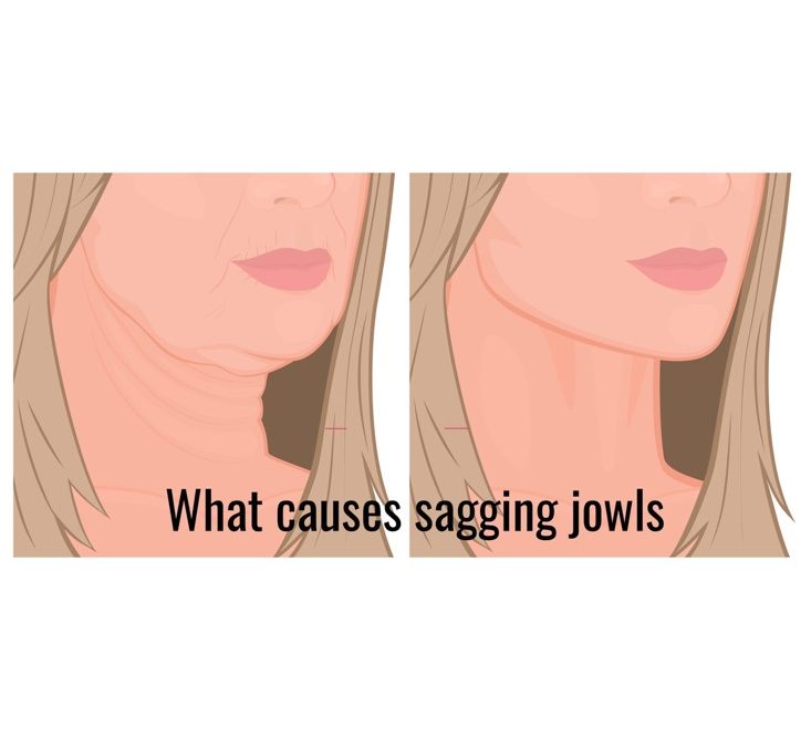 Mainly the loss of elastin and collagen is the cause of sagging jowls. As you get older you lose the amount of collagen and elastin in your skin and when this happens gravity causes it to sag.