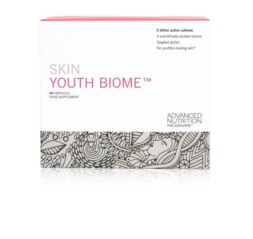 Skin Youth Biome™ consists of a unique combination of 4 scientifically proven live cultures and vitamin C which supports skin collagen formation and that is unique to the Advanced Nutrition Programme™. Not only does it support and maintain a normal healthy gut, but it also works to give a smoother, more youthful looking skin. BENEFITS: ∙ works from the inside out ∙ supports the skin’s natural barrier ∙ helps reduce fine lines and wrinkles ∙ supports collagen formation ∙ supports gut flora. DIRECTIONS: Take one capsule a day with a meal or as your health professional advises. WARNINGS: If you are under medical supervision, pease consult a doctor before use. Keep out of reach of children.